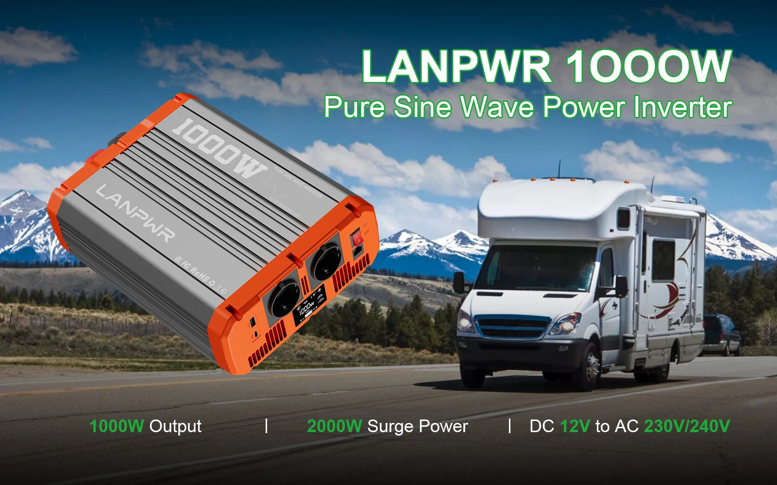 Whether you're off-grid in an RV, camping deep in nature, or preparing for a power outage, the LANPWR 1000W Inverter delivers the clean, dependable power you need. With pure sine wave output, it's safe for running laptops, CPAP machines, portable fridges, lights, and more—just like at home.