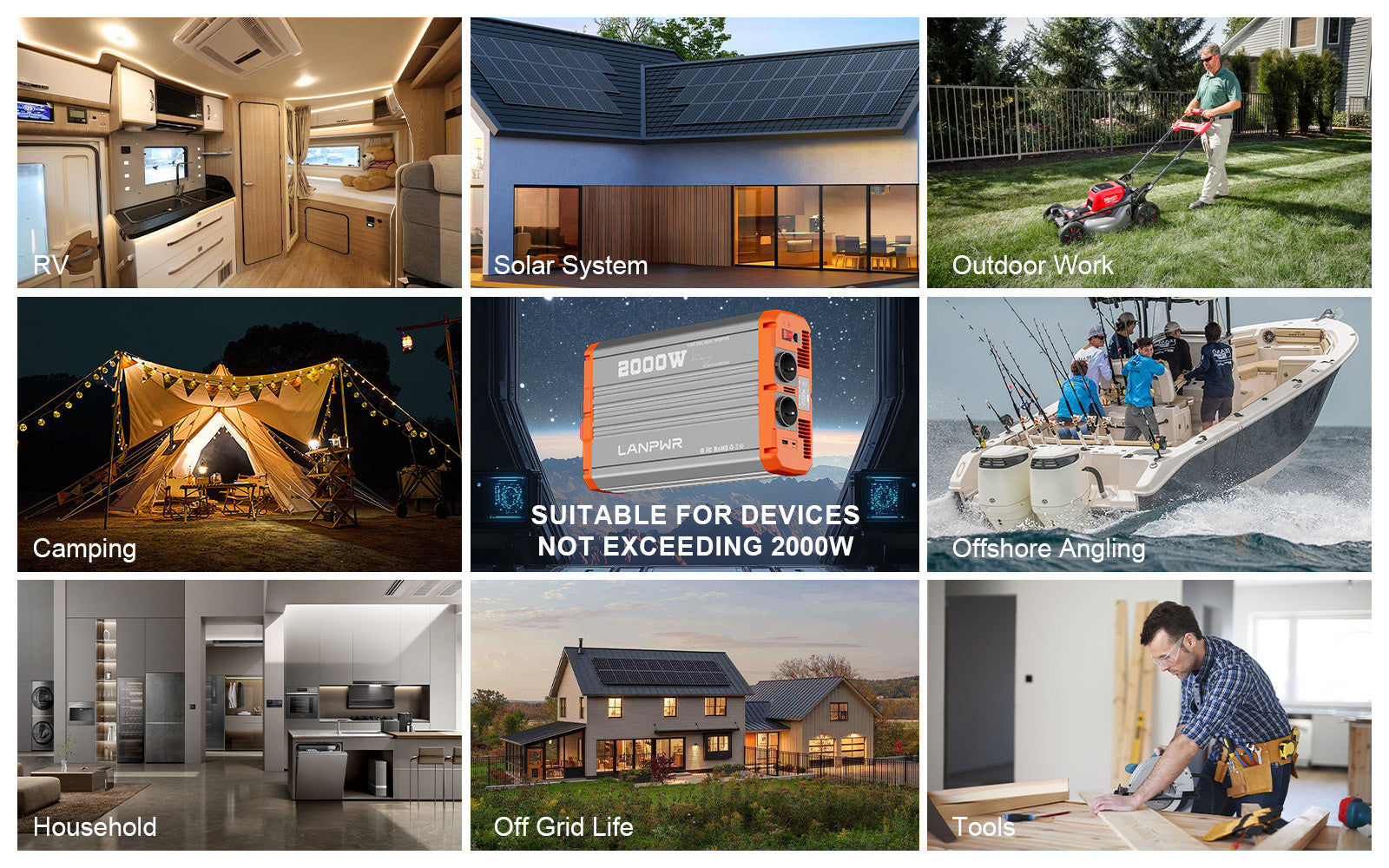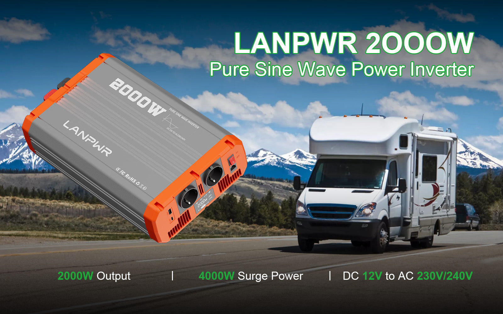 Whether you're off-grid in an RV, camping deep in nature, or preparing for a power outage, the LANPWR 2000W Inverter delivers the clean, dependable power you need. With pure sine wave output, it's safe for running laptops, CPAP machines, portable fridges, lights, and more—just like at home.