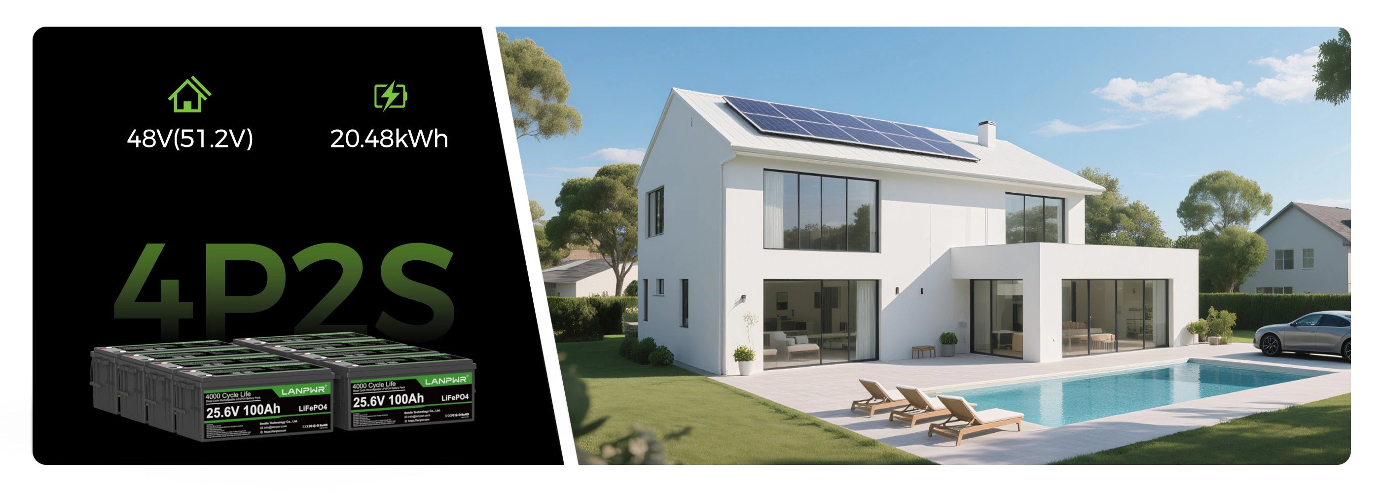 - Flexible in Series and Parallel (Up to 8 batteries, Max 2S4P, up to 20.48kWh)