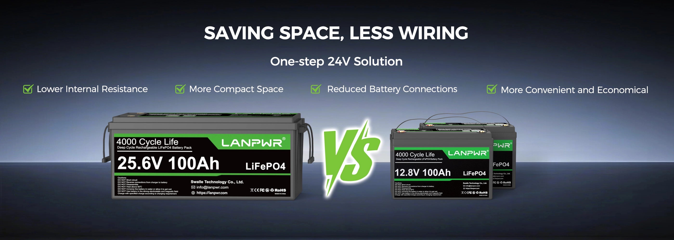 A: Our LANPWR 24V batteries can be connected in series, parallel, or a combination of both to create a larger, more powerful battery bank suited to your needs.